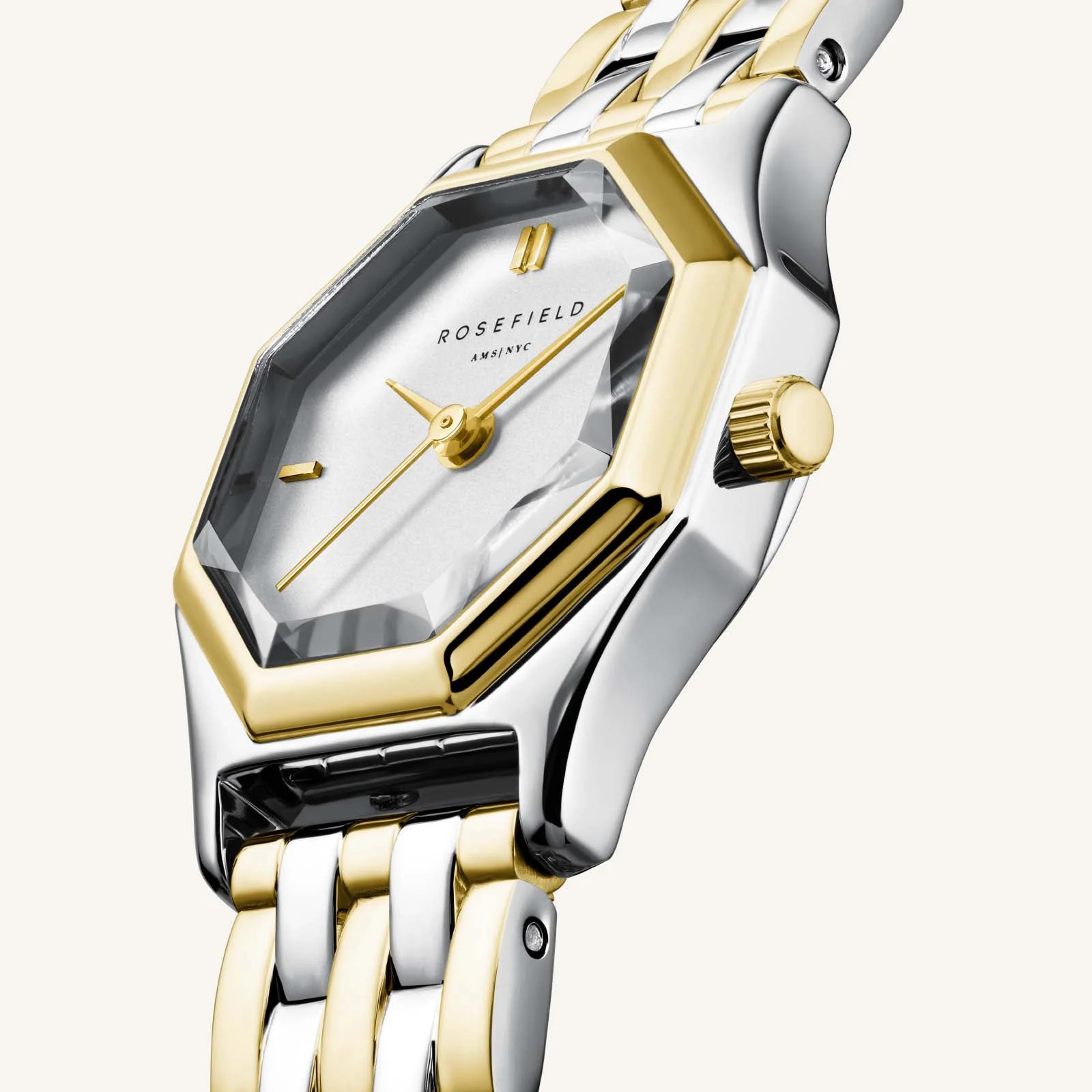De unieke vorm van The Gemme doet denken aan een briljant geslepen edelsteen. Dit kleine klokje past perfect om de smallere pols en is geschikt voor iedere vrouw die op zoek is naar een verfijnd maar opvallend horloge.